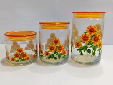 Total: 6 pcs1 small jar + 1 air-tight lid1 medium jar + 1 air-tight lid1 large jar + 1 air-tight lid